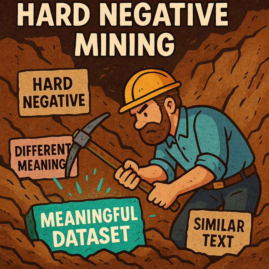 hard negative가 거의 필수시 되는게, 유사하지만 의미가 다른 문장임을 명확히 구분해야할 필요가 있어서 Text Embedding모델에서 Sentence Similiarity 테스크를 다룰 경우, hard negative mining이 대체로 필수적이다. 이는 랜덤 샘플링이 아닌 특정 기준과 필터링을 통해 걸러진 유의미하고 품질이 높은 negative를 만드는 것에 목적이 있다.