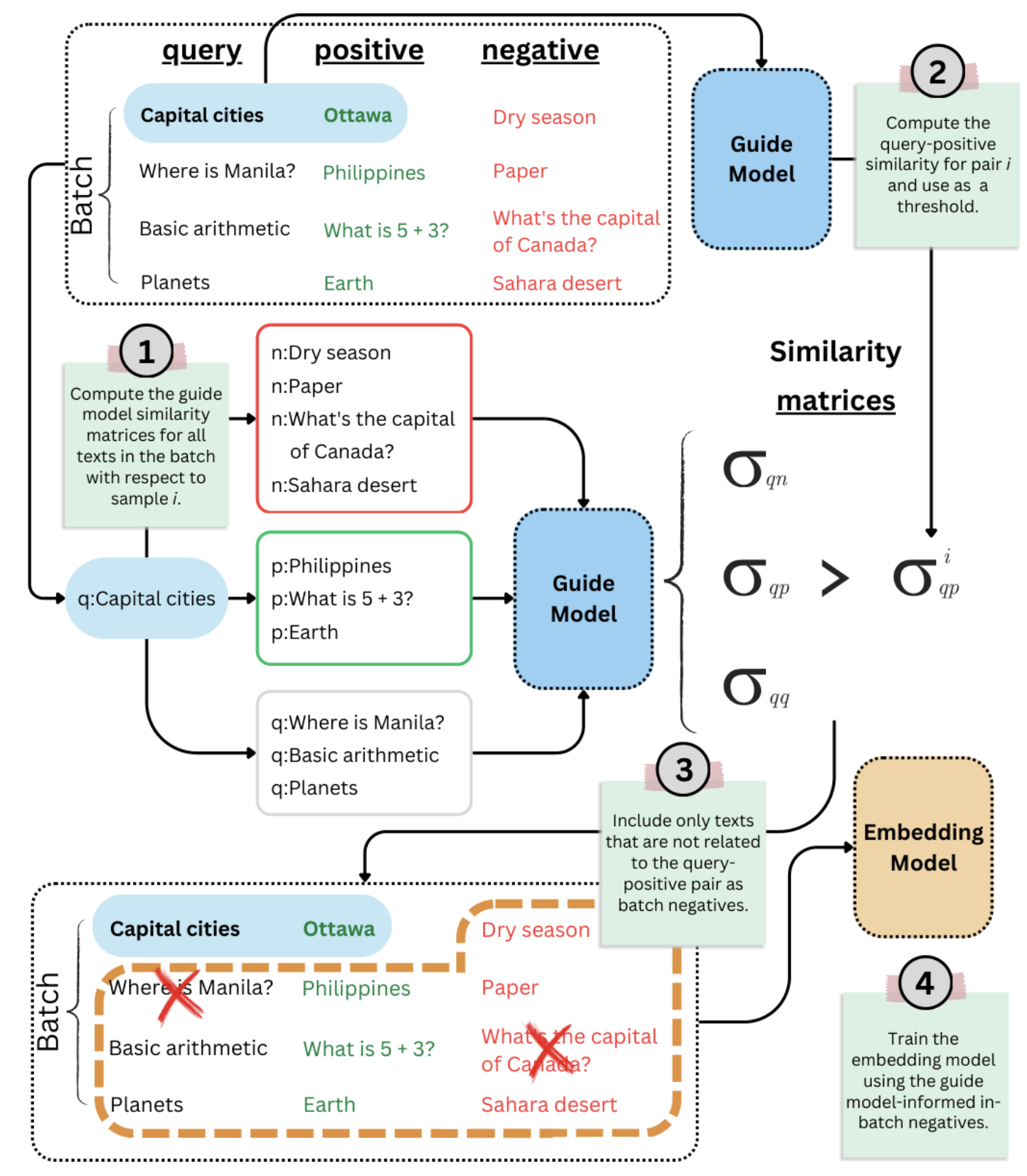 따라서 해당 Loss는 Guide model을 활용하여 필터링 조건을 train time에서 배치단위로 진행하면서, 다른 query의 negative를 효과적으로 필터링 할 수 있는 Loss여서 기입하였다.