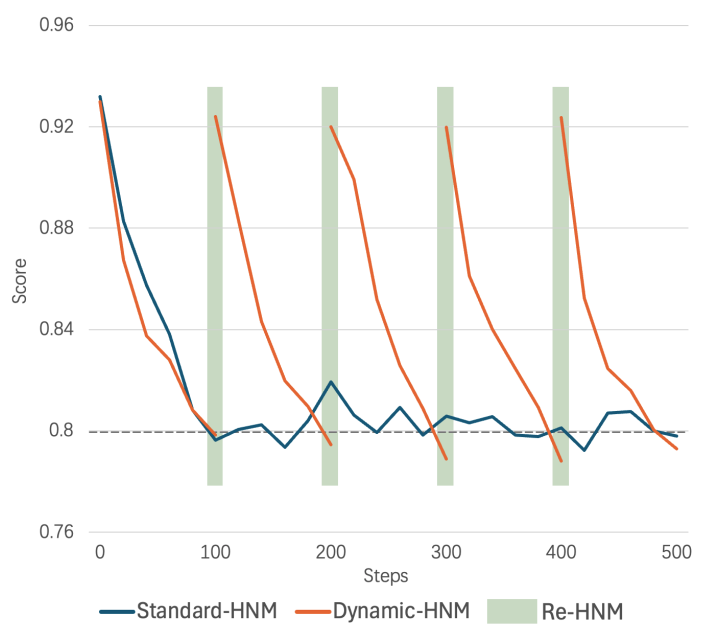 - DHNM은 학습 과정에서 반복적으로 hard Negative를 마이닝하여 모델이 변화하는 학습데이터에 동적으로 적응하도록 함