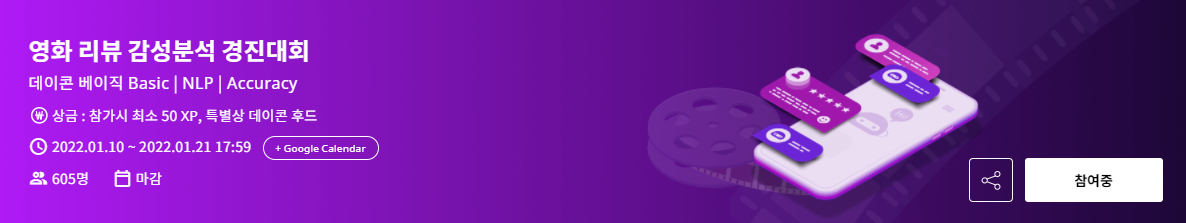 sample_submission.to_csv('/content/drive/MyDrive/dacon/movie_review_analysis/submission.csv', index=False)