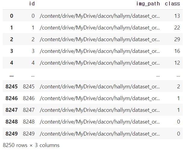 저는 DataFrame을 통해 이미지의 경로와 라벨을 지정한 후 이를 기반으로 데이터를 다루는 것을 선호합니다. 하지만 데이터셋의 구조 및 형태는 테스크마다 많이 상이하므로 유동적으로 다뤄야합니다. 해당 테스크에서는 폴더명이 곧 클래스이며, 그 안에 이미지가 존재하는 형태입니다. 아래는 이 경우를 기반으로 한 코드입니다.