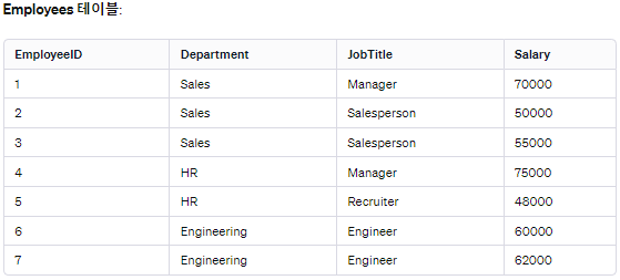 이 쿼리는 Department와 JobTitle별로 Salary의 합계를 계산합니다. 부서별, 직책별, 그리고 전체의 합계를 포함합니다.