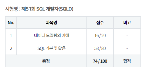 51회 SQLD시험 결과가 발표되었다.