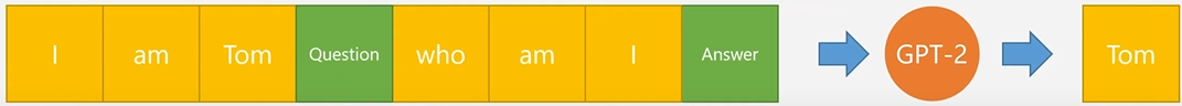 또 다른 테스크로 Q&A 역할을 하는 모델을 만들기 위해 아래 그림처럼 Question과 Answer이라는 스페셜한 token을 사용하여 학습한다.