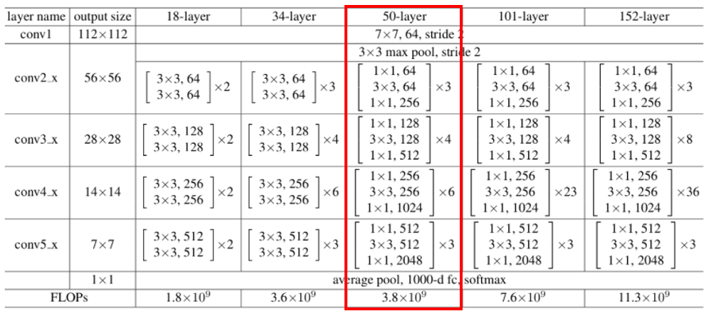 * resnet 50 구조