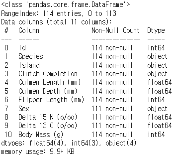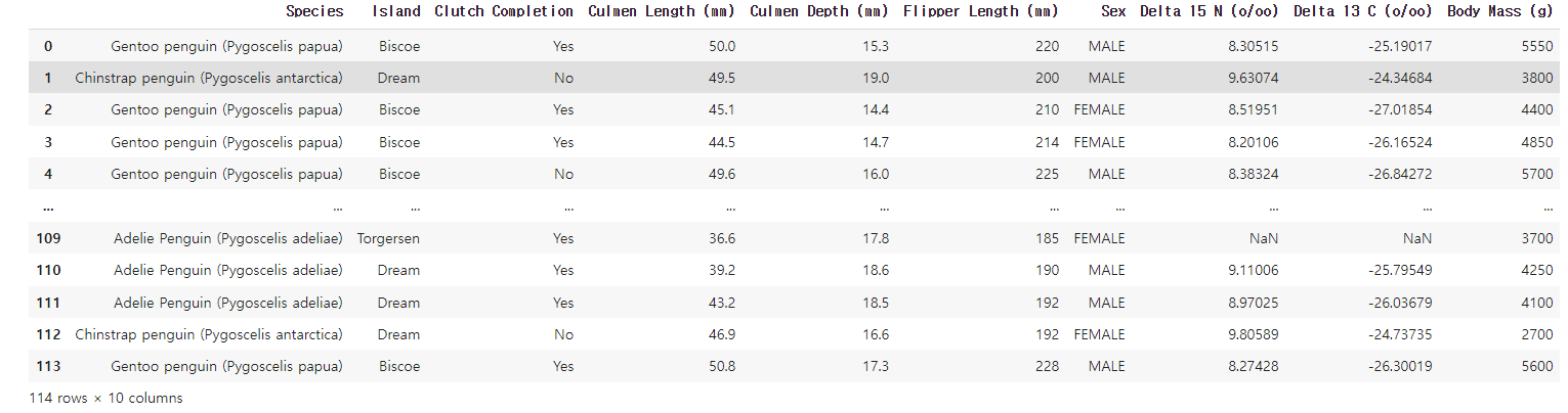 먼저 예시로 제시된 데이터는 데이콘에서 진행되는 '펭귄 몸무게 예측 경진대회'에서 제공된 데이터 셋입니다.
