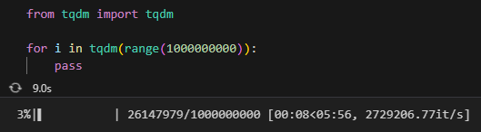 정말 간단한 코드이다. 전체 반복량과 현재 진행상황. 경과 시간 및 남은 시간, 초당 반복횟수등을 알려준다.
