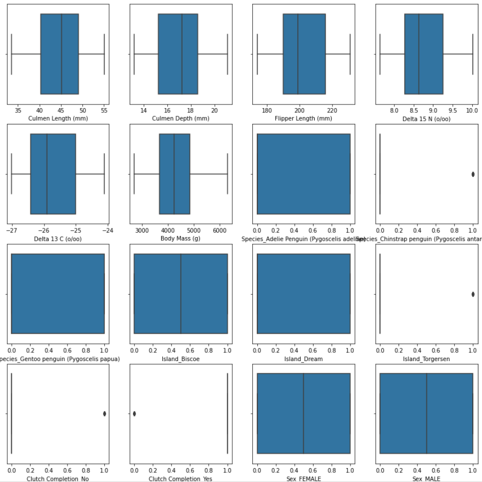 따라서 어떠한 데이터 셋에서 각 컬럼별 이상치를 4 * 4 정도로 출력하여 보고싶다면 아래와 같이 진행하시면 됩니다.