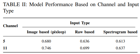Raw데이터의 1D-CNN(resnet 매커니즘 사용), Spectrogram(Concat&Resnext), Image(seresnext)중에 Image데이터가 가장 성능이 우수하였습니다. Image데이터의 생김새는 아래와 같습니다. (확장실험의 11channel 데이터 예시)